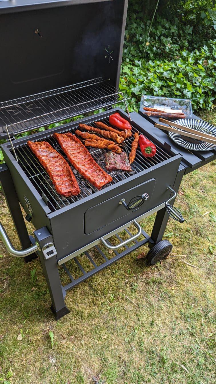 la praticissima manovella e grazie al termometro incorporato e le prese d'aria regolabili, raggiungerai subito una temperatura uniforme per il pollo, le salsicce o per grigliare le verdure.